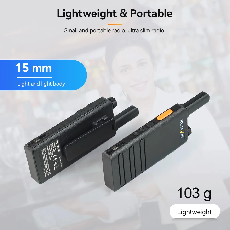 Retevis RT622P (B63) Nueva versión del mini walkie-talkie ultrafino RT22 de 15 mm PMR446 Radio bidireccional profesional tipo C VOX para la familia - TopDealBox