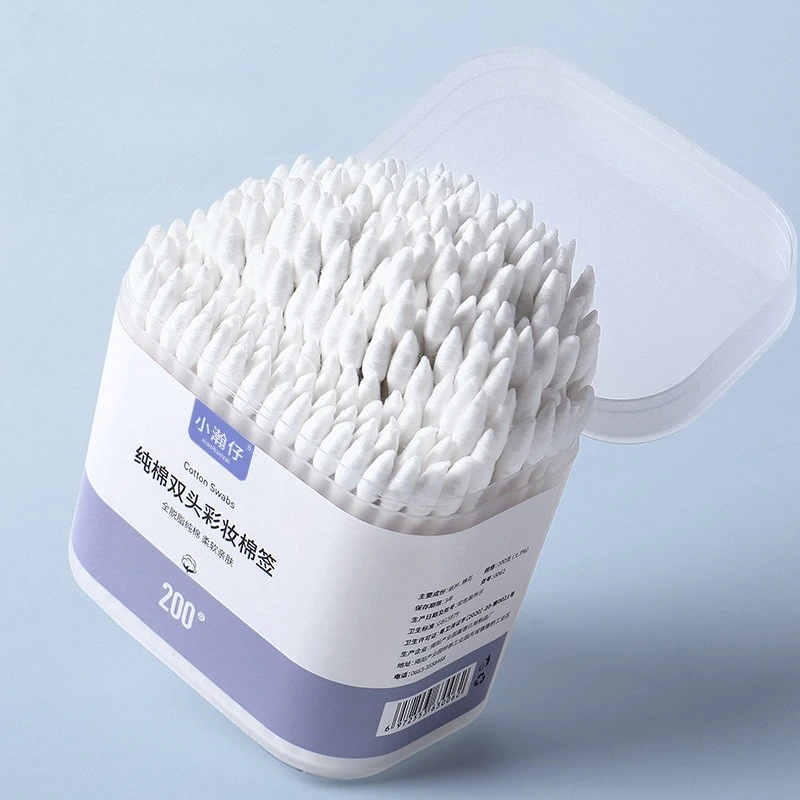 200 piezas en una caja de hisopos de algodón de maquillaje hisopos de algodón con eje de papel para oreja de doble punta - TopDealBox