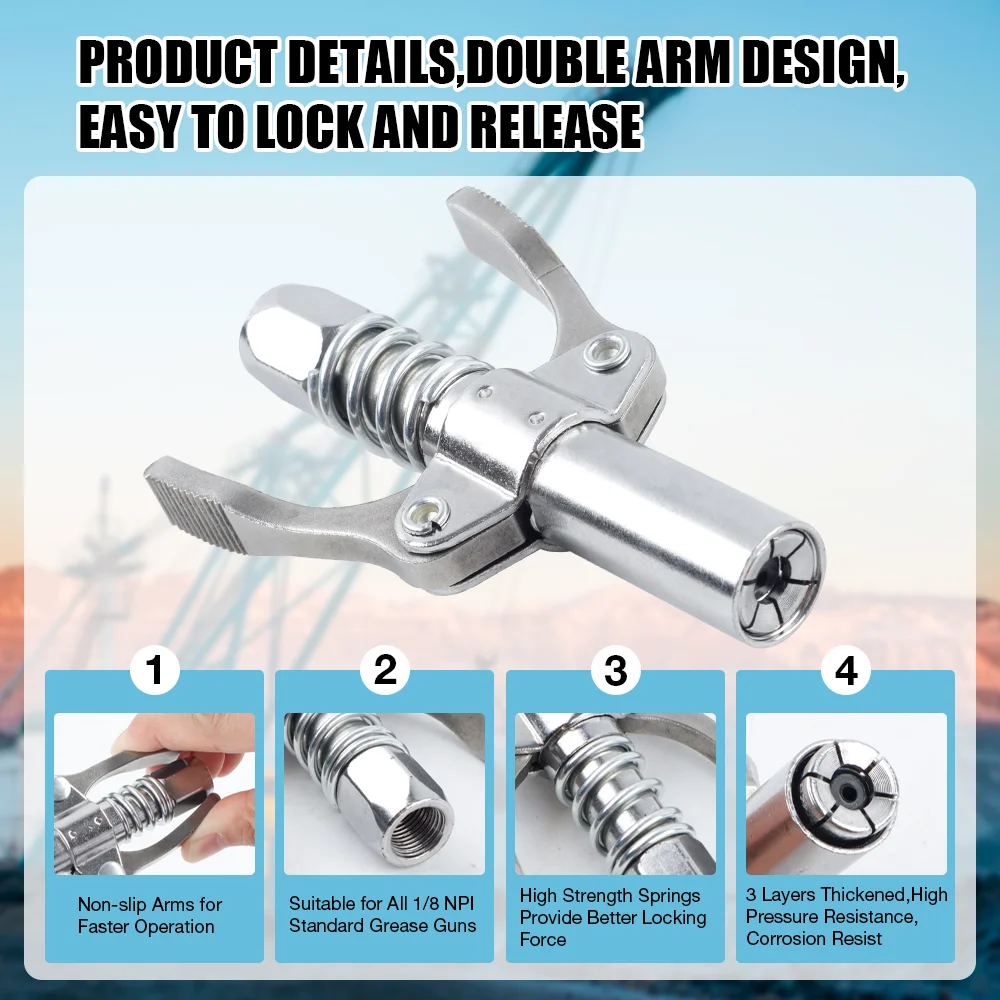 ♡Quick viewAcoplador de pistola de engrase de 10000PSI NPTI/8 bomba de aceite inyector de boquilla de engrase de liberación rápida, pistola de engrase de aceite lubricante, herramientas de reparación de automóviles14361.00 ARSHot★★★★★★4.8