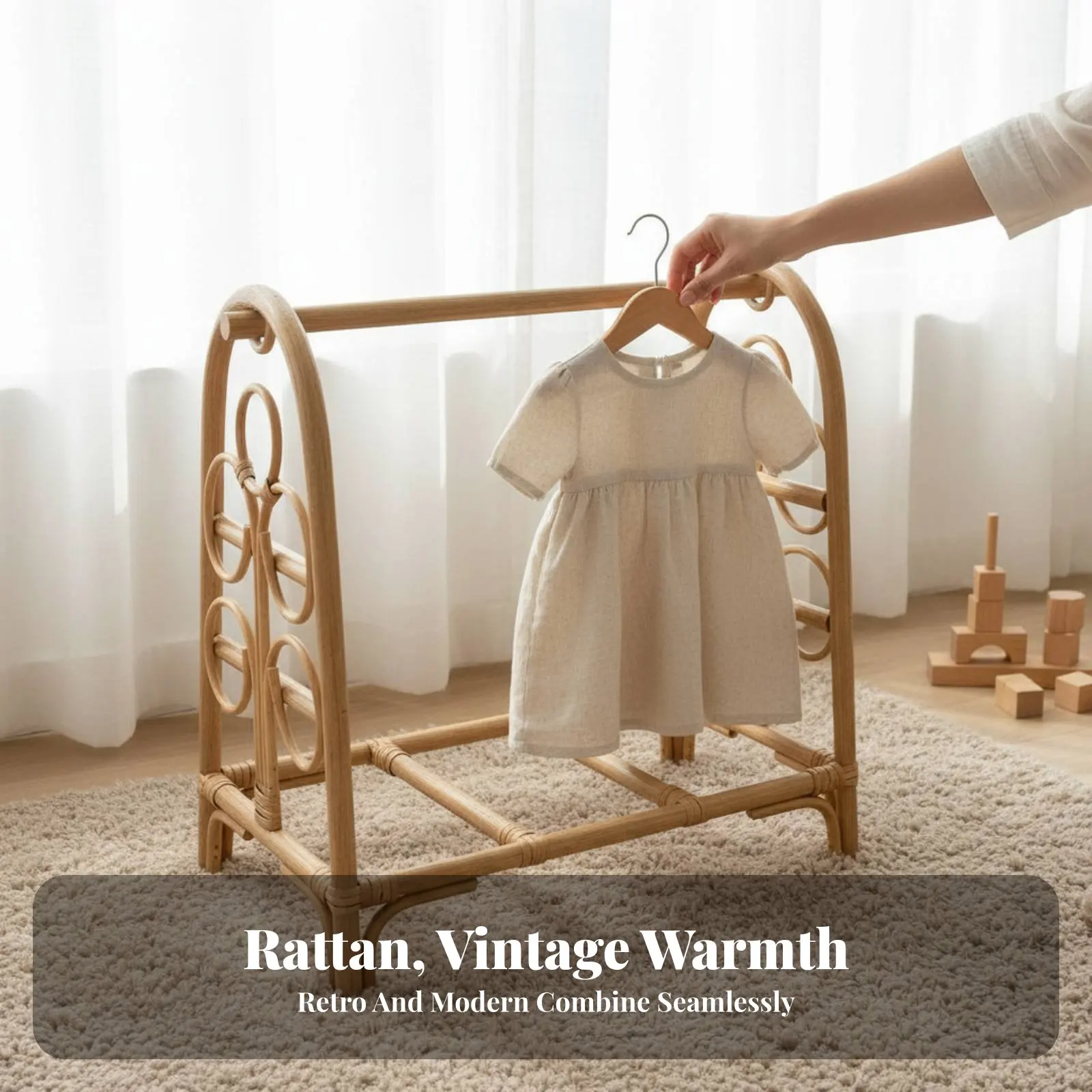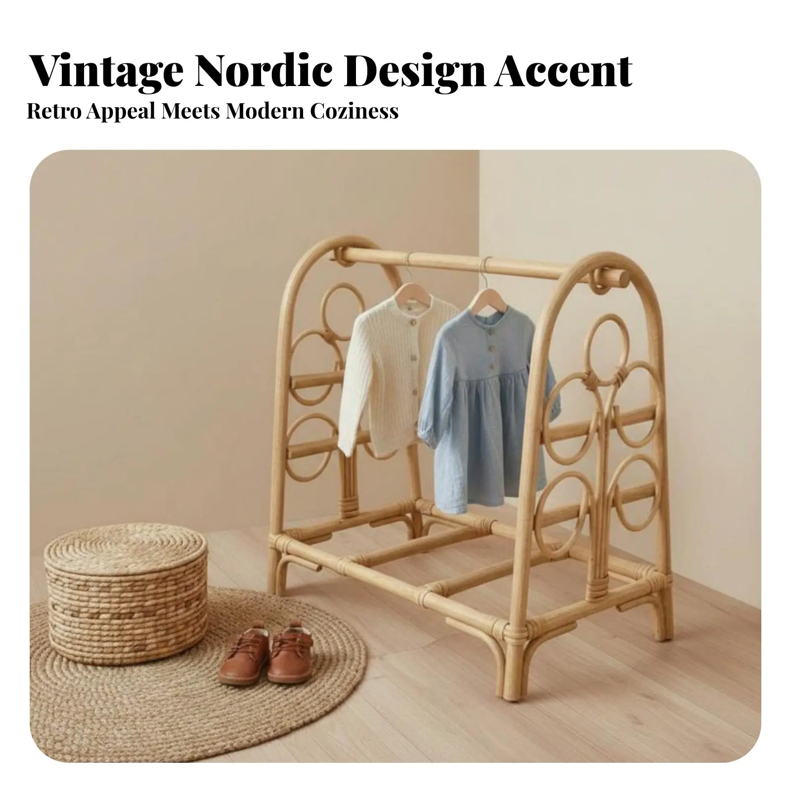 Perchero de ropa de ratán arqueado, de pie, tejido a mano, con estética minimalista para padres - TopDealBox