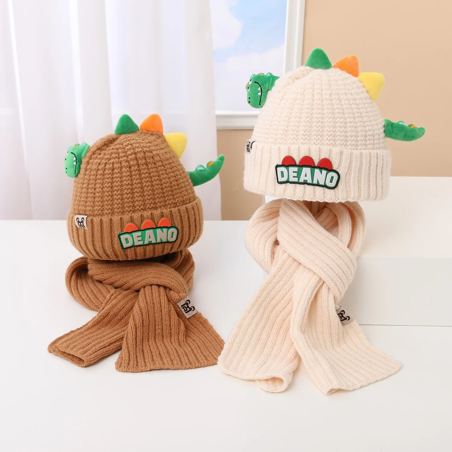 Conjunto de dos piezas para chico, gorro, bufanda, bonito gorro de dinosaurio, pañuelo cálido para invierno para niños de 1 a 4 años, gorro de regalo de Navidad - TopDealBox