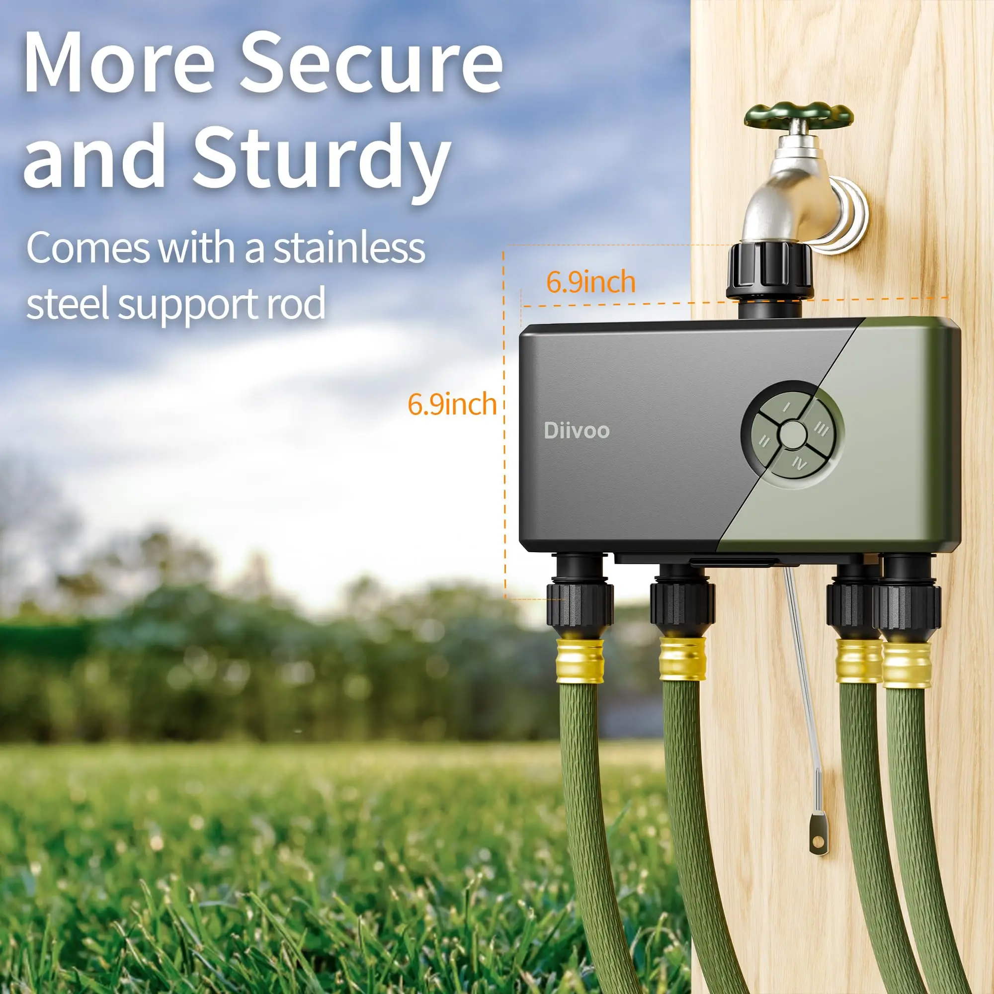 Diivoo-temporizador de agua WiFi para jardín, temporizador de riego automático de 3/4 zonas, controlador de sistemas de riego con retardo de lluvia, riego Manual - TopDealBox