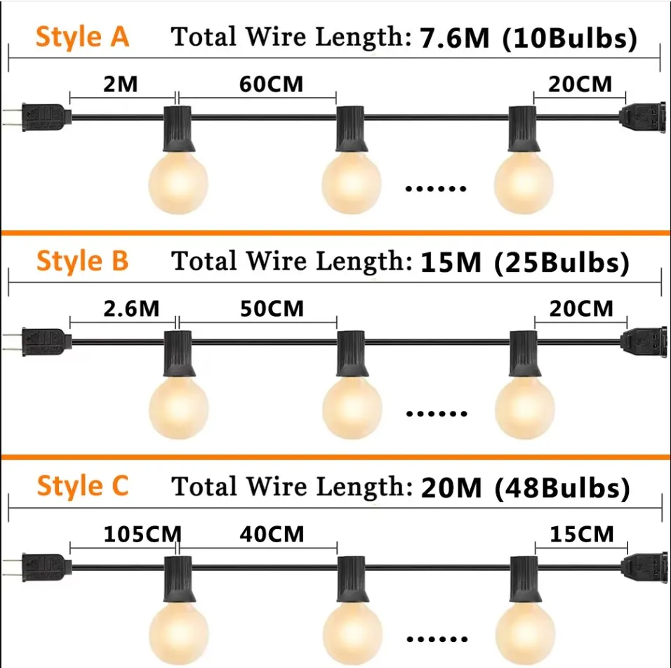 ♡Quick viewGuirnalda de luces G40 a prueba de agua, bombillas de plástico inastillable E12 de 1W, guirnalda para exteriores, enchufe europeo y estadounidense, decoración de jardín de cumpleaños conectável22628.00 ARSHot★★★★★★4.9