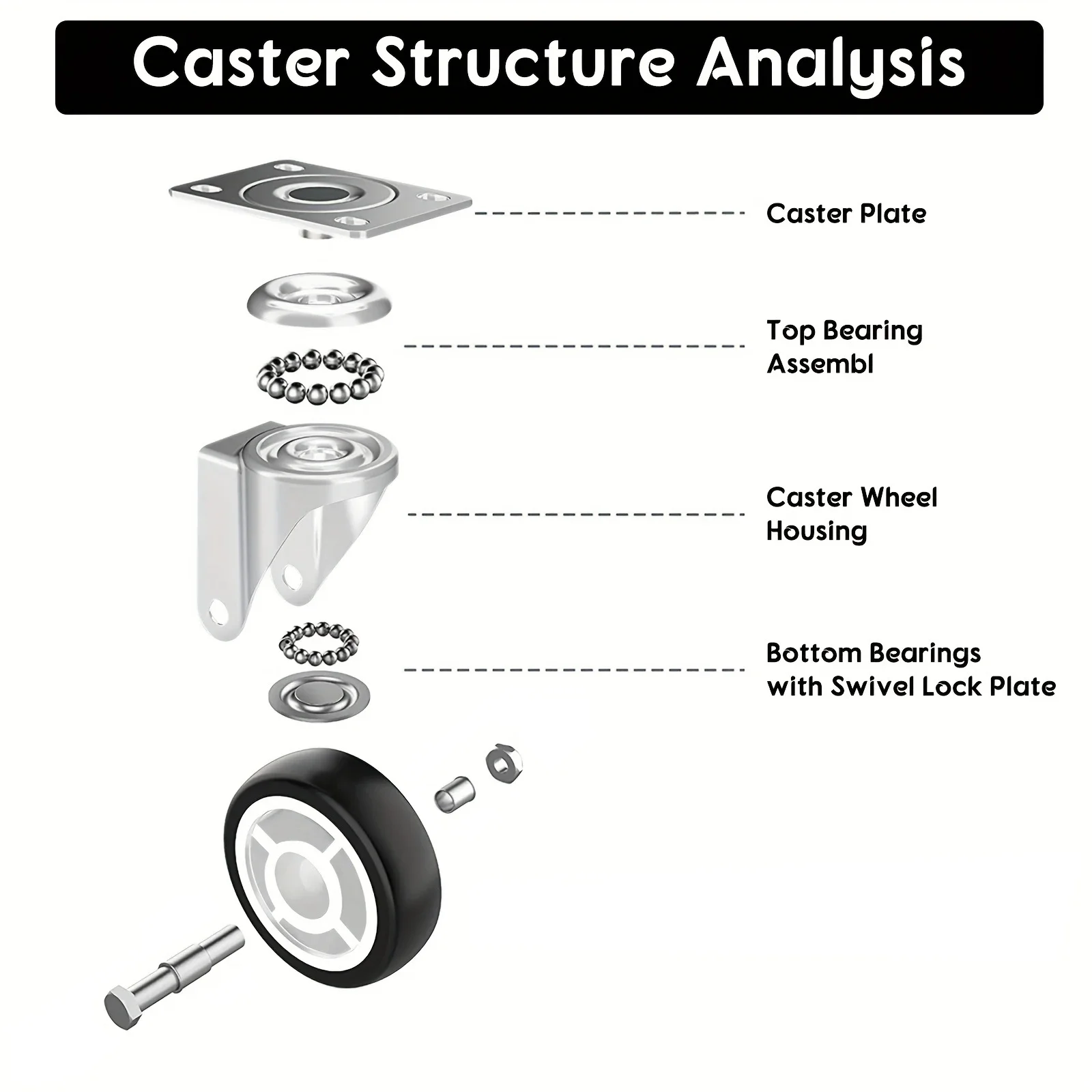 Juego de 4 ruedas para muebles de PVC de 1 "/1,25"/2 ", ruedas de carro pesadas universales silenciosas resistentes al desgaste, ruedas giratorias de 360 grados