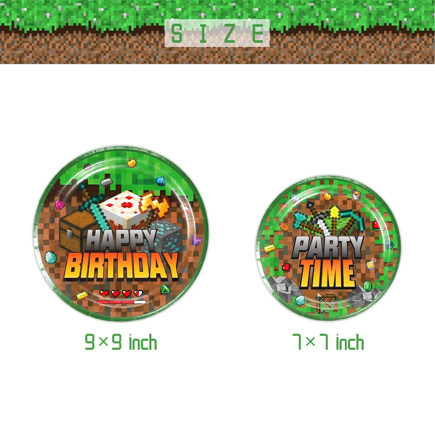 Juego de vajilla de píxeles para minería de dibujos animados, decoración para fiesta de cumpleaños, taza, plato, servilleta, mantel para pastel, fiesta, Baby Shower para niños - TopDealBox