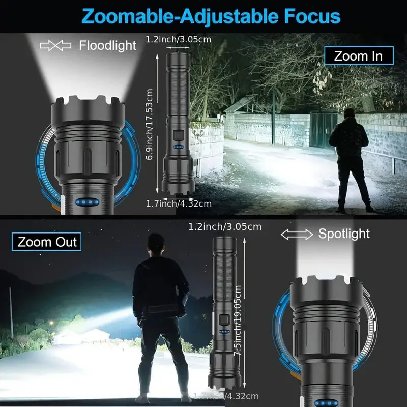 ♡Quick viewLinternas Led de alta potencia con Zoom de tiro largo, linterna superbrillante, recargable por USB, luz de antorcha muy fuerte para acampar36389.00 ARSHot★★★★★★4.7