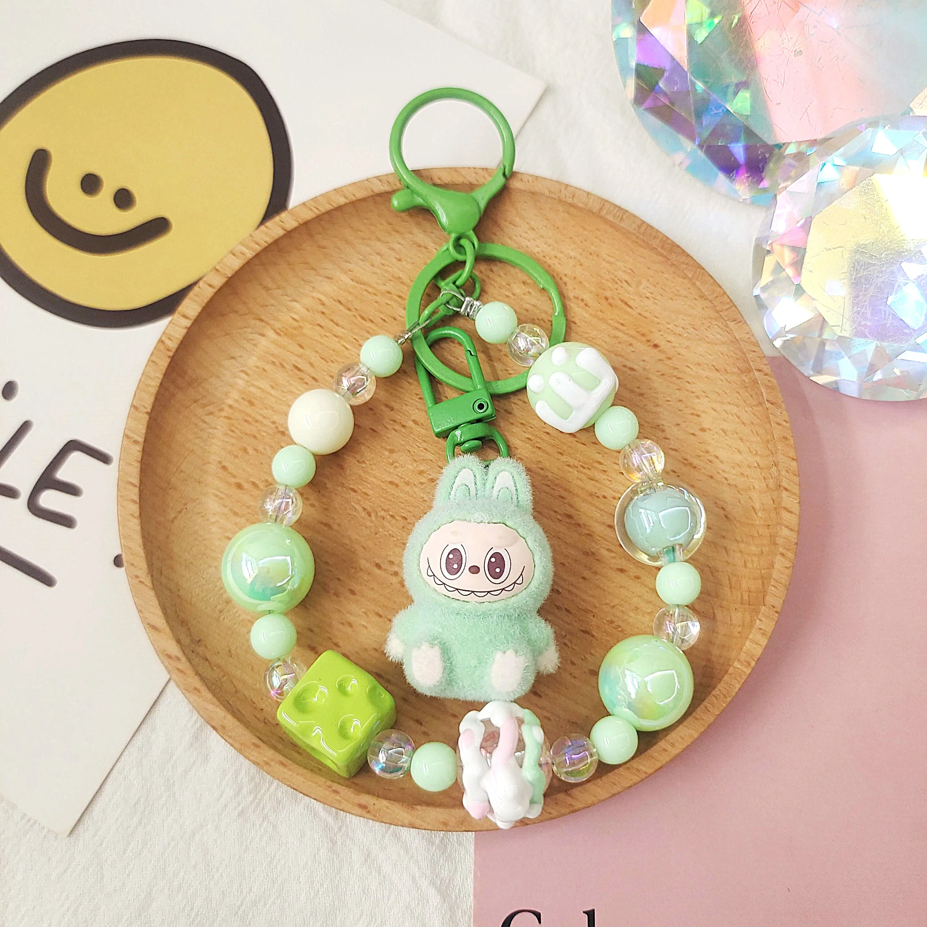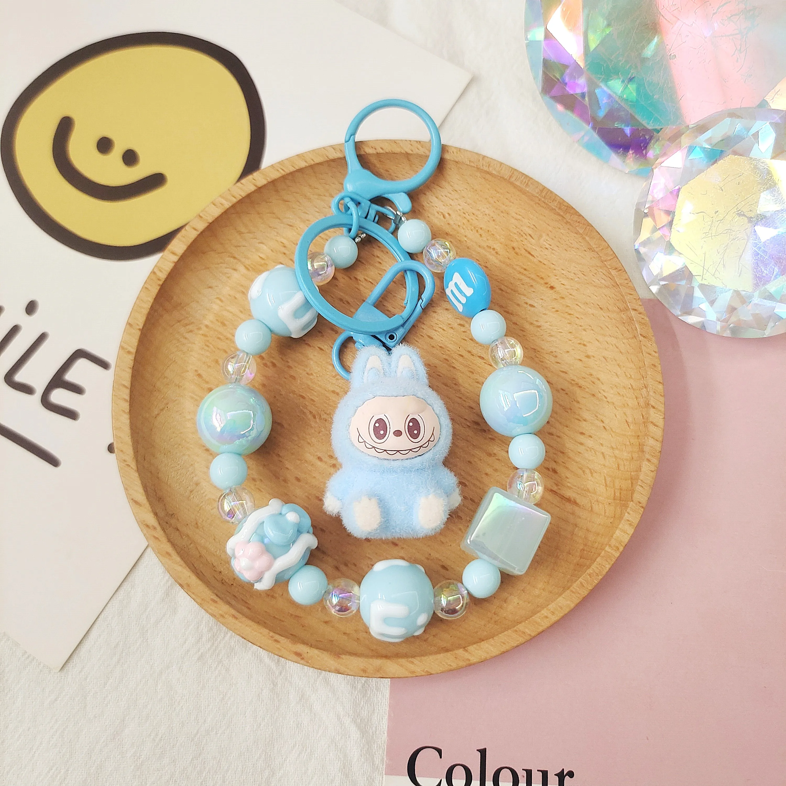 LLavero Labubu, joyería de cuentas creativas, colgante de mochila de dibujos animados de resina, accesorios Diy para parejas, decoración, regalos de vacaciones para niños - TopDealBox