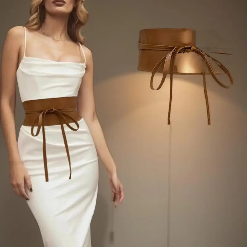 Longitud 115cm/240cm Bowknot envoltura Simple banda ancha de lujo cinturón de cuero corsé pretina vestido de mujer Cummerband - TopDealBox