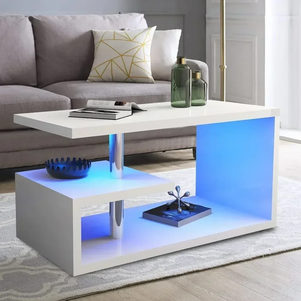 ♡Quick viewMesa de centro con luces LED de 16 colores de alto brillo, espacio de almacenamiento, mesa central para salón y dormitorio, mesa de centro moderna105541.24 ARSHot