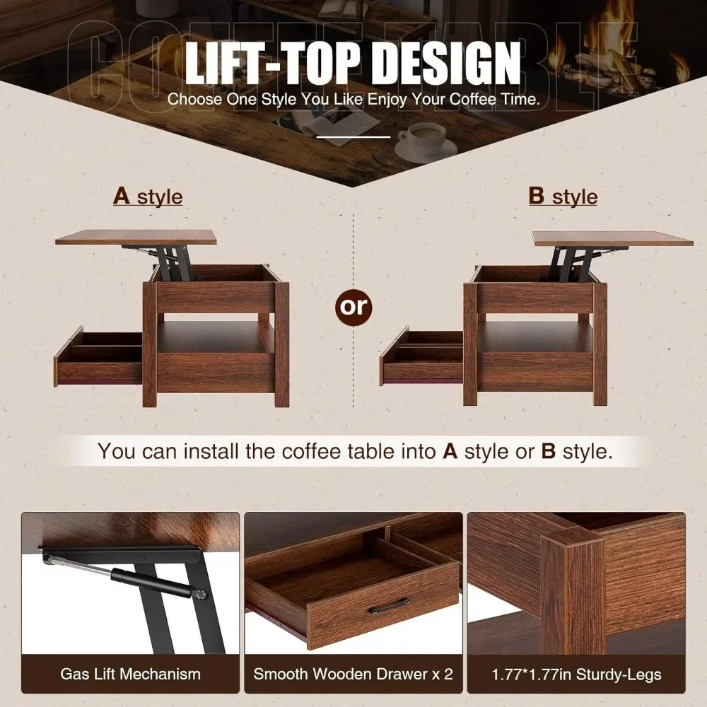 ♡Quick viewMesa de centro elevable de 40", mesas de centro 4 en 1 con gabinete de almacenamiento para sala de estar, mesa de centro pequeña de granja1612021.17 ARSHot