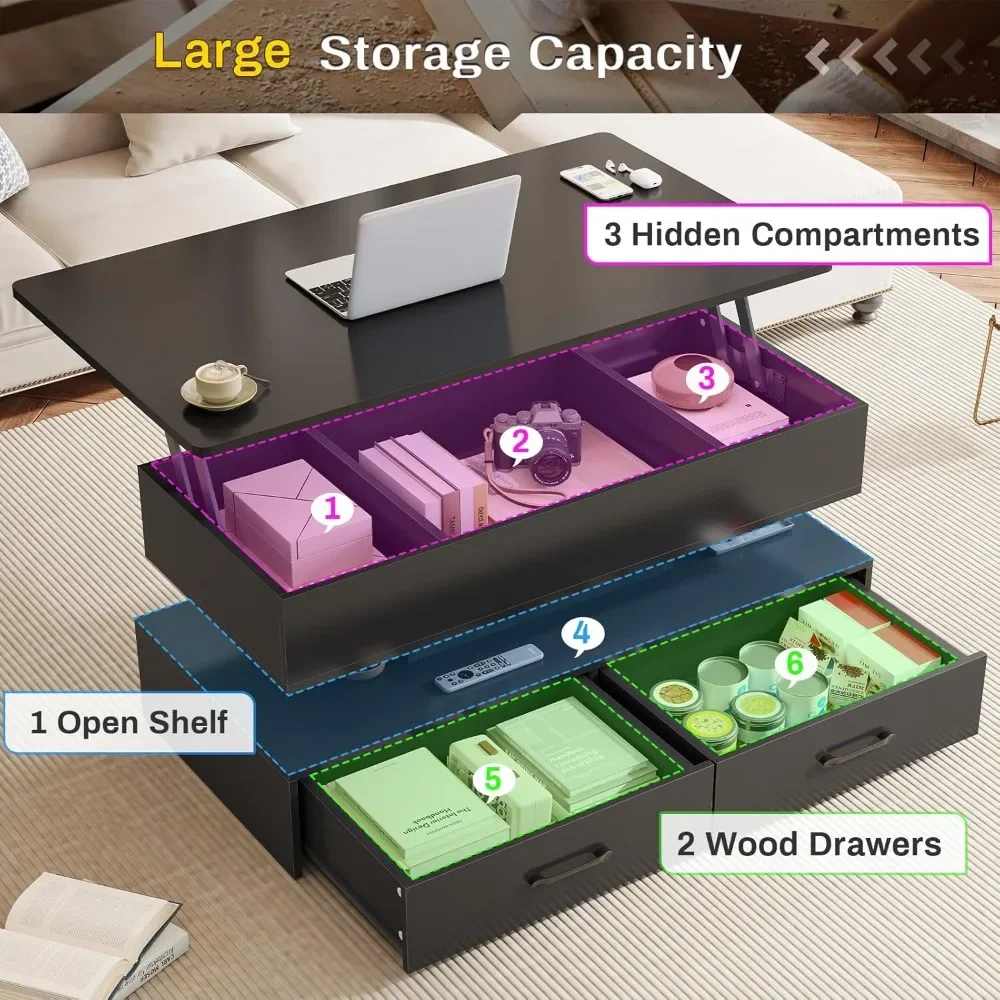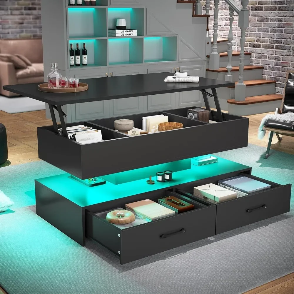 ♡Quick viewMesa de centro con luces LED de 16 colores de alto brillo, espacio de almacenamiento, mesa central para salón y dormitorio, mesa de centro moderna105541.24 ARSHot