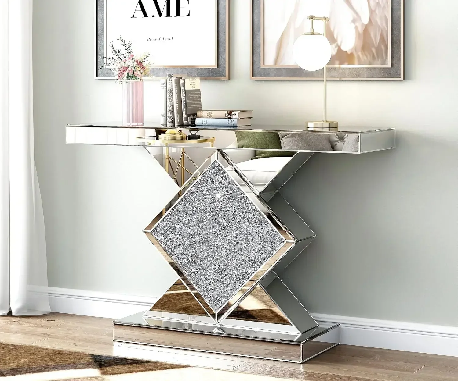 ♡Quick viewMesa decorativa estilo W, mesa de entrada plateada con incrustaciones de cristales triturados brillantes, mesa de 35 pulgadas para sala de estar y pasillo353833.57 ARSHot