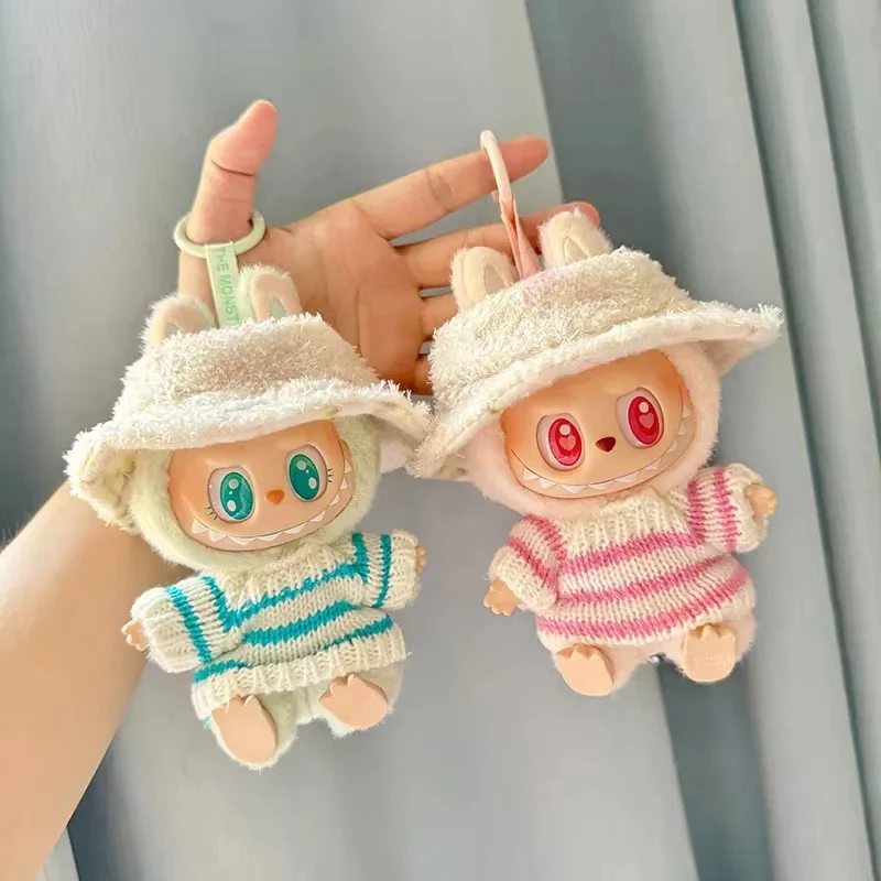 Mini ropa para muñecas, accesorios para Corea, Labubu V1 V2, ídolo, fiesta sentada, suéter a rayas rosas y blancas, ropa de copa - TopDealBox