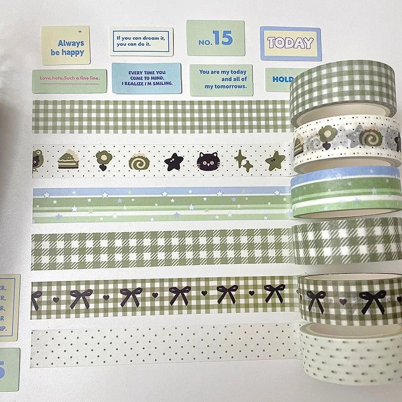 ♡Quick viewMINKYS 6 unids/lote conjunto de cintas decorativas verdes Matcha lindo dibujos animados creativo Washi Tape papelería escolar14497.00 ARSHot★★★★★★4.8