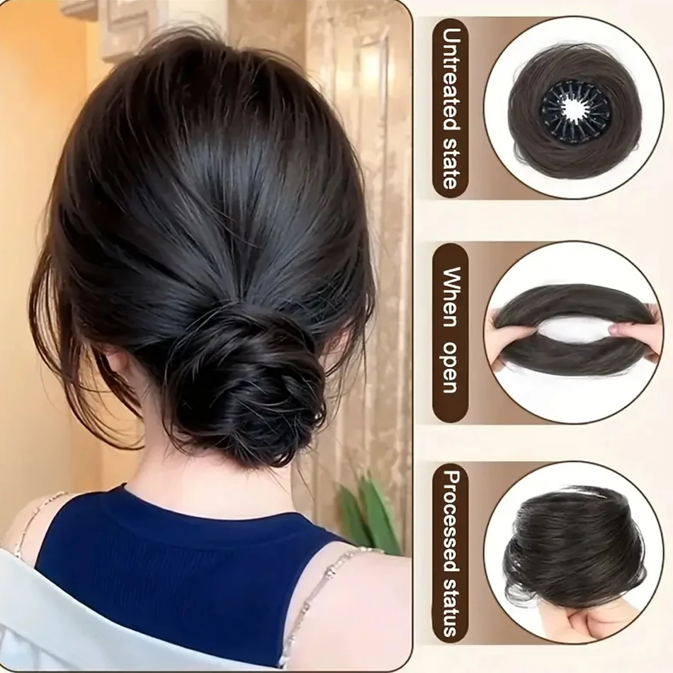 Moño de pelo sintético mágico de 4 pulgadas con Clips elásticos circulares, peluca de pelo recogido de Donut recta, postizos retráctiles en forma de Nido de Pájaro - TopDealBox
