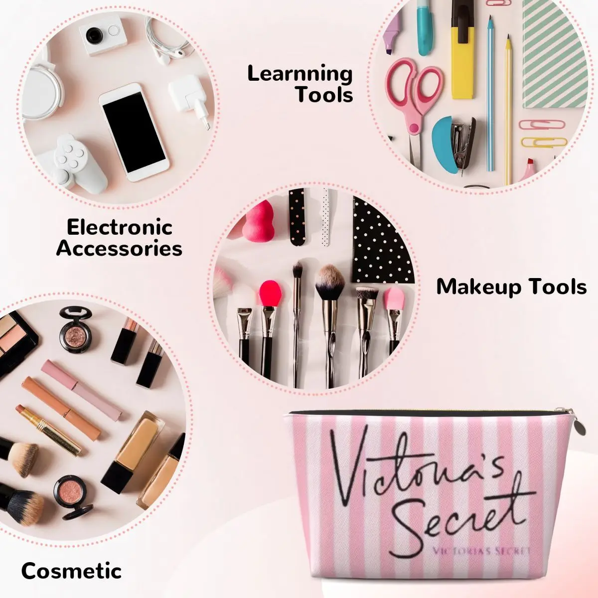 Neceser de viaje de cuero compacto V-ictoria's S-ecret: bolsa de maquillaje liviana y espaciosa - TopDealBox