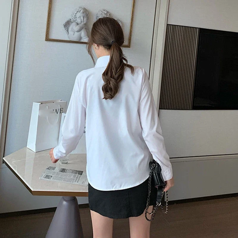 ♡Quick viewCamisa blanca de manga larga para mujer, ropa de trabajo profesional, top elástico ajustado sin hierro, 20248554.00 ARSHot★★★★★4.0