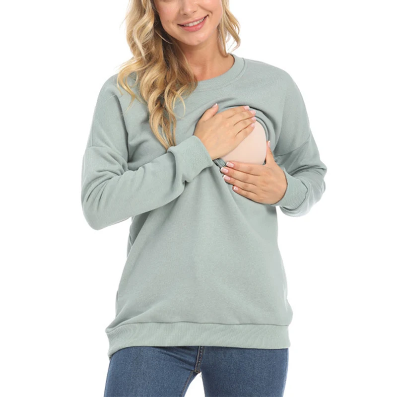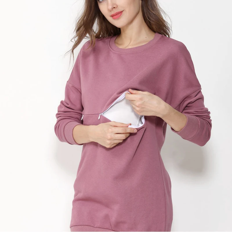 Sudadera de maternidad para lactancia, 100% de algodón, ropa de maternidad de invierno, camiseta, Tops de lactancia, suéter con capucha para mujeres embarazadas - TopDealBox