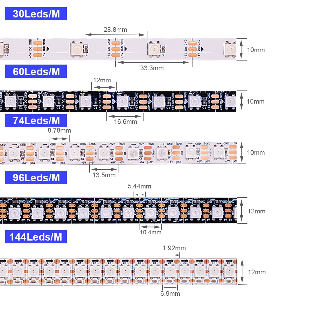 ♡Quick view5mm WS2812 2020SMD RGBIC 60/100/120/160/200Leds/m tiras LED a todo Color WS2812B lámpara de luces Led direccionable individualmente DC5V8298.00 ARSHot★★★★★★4.8