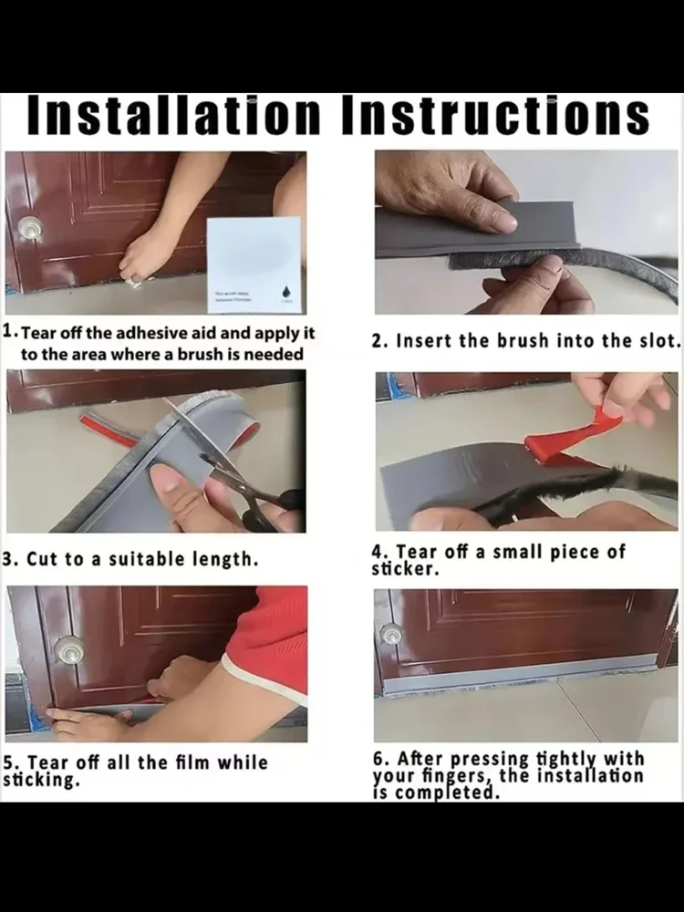 Tira de sellado de cepillo de pelo de 100CM, tira de sellado inferior de puerta, tira de sellado inferior de puerta insonorizada a prueba de insectos, tira autoadhesiva de Tope de puerta - TopDealBox