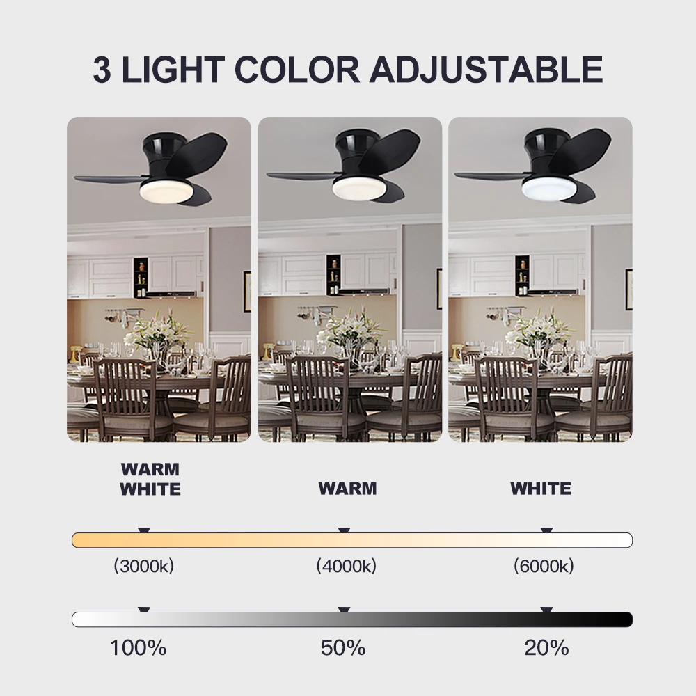 Ventilador de techo de 25 pulgadas con luz y control remoto, ventilador de techo LED con 3 aspas, para interior, dormitorio, sala de estar, comedor, cocina - TopDealBox