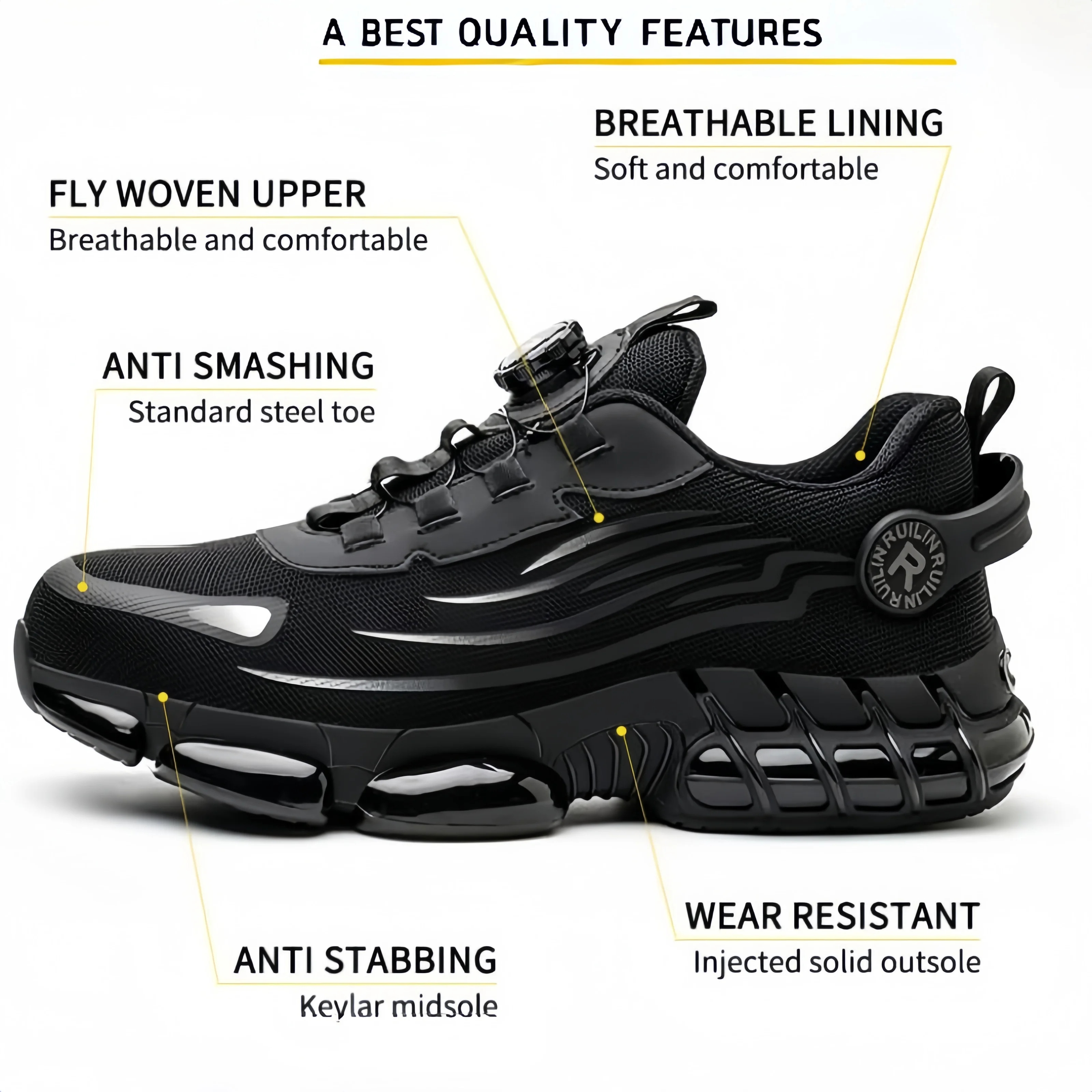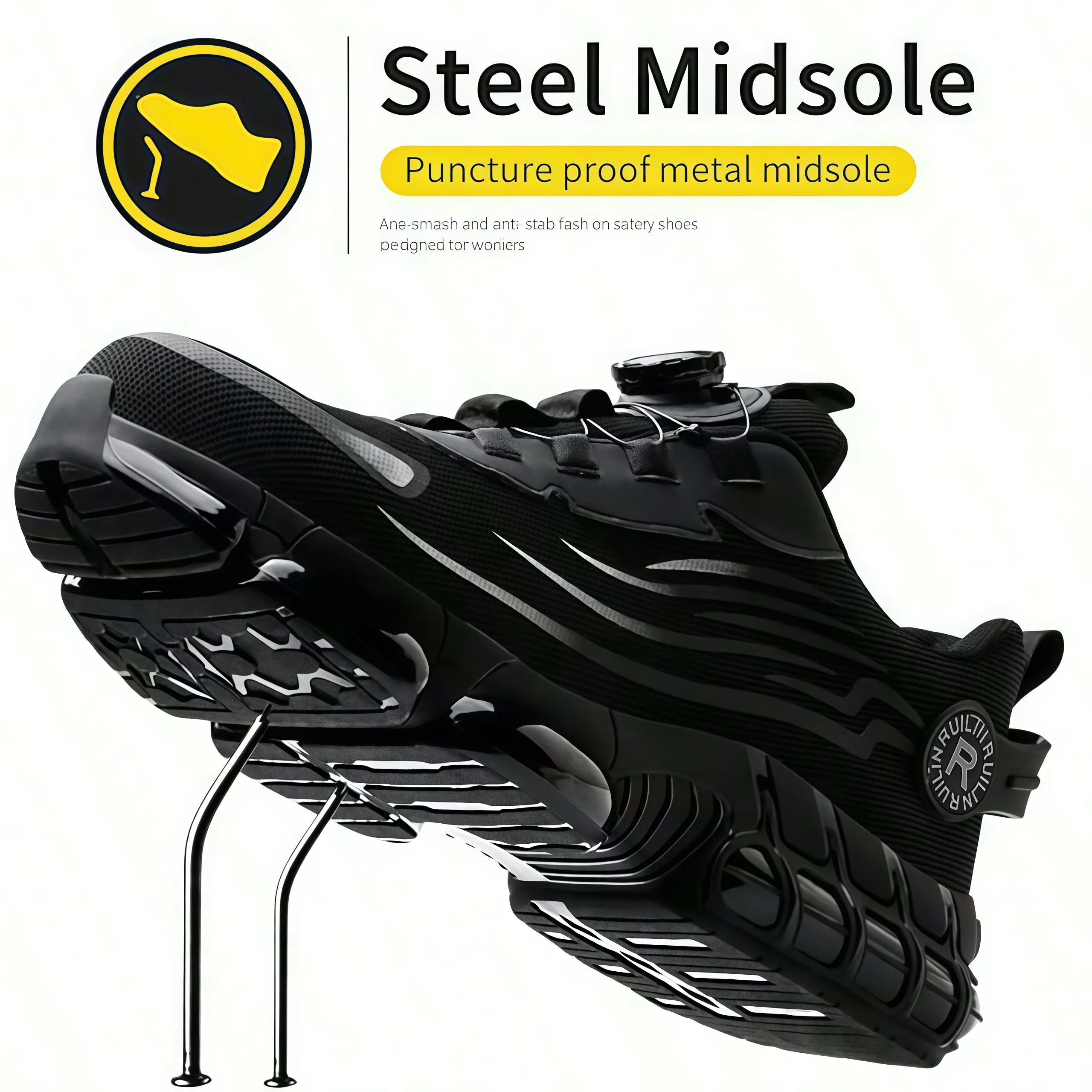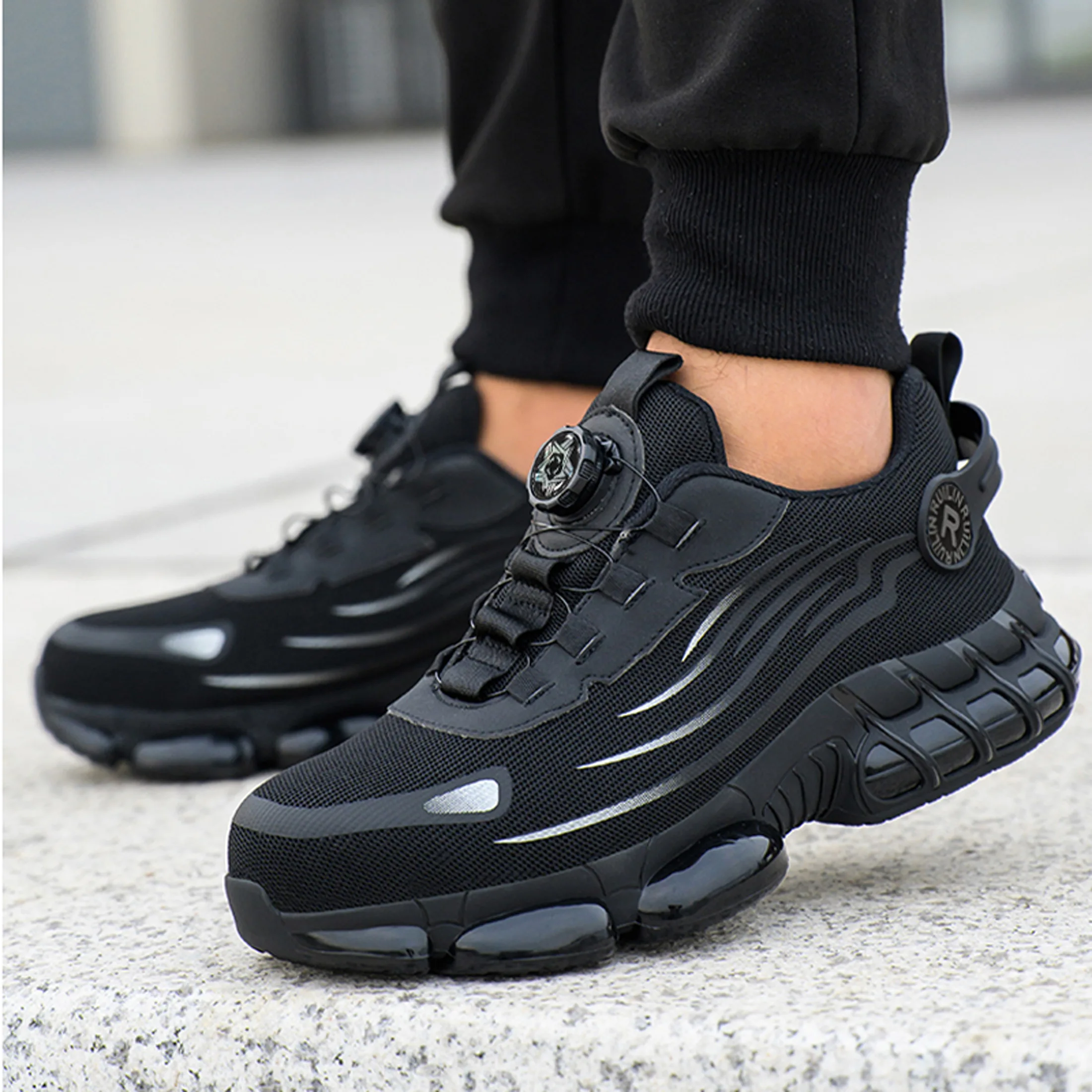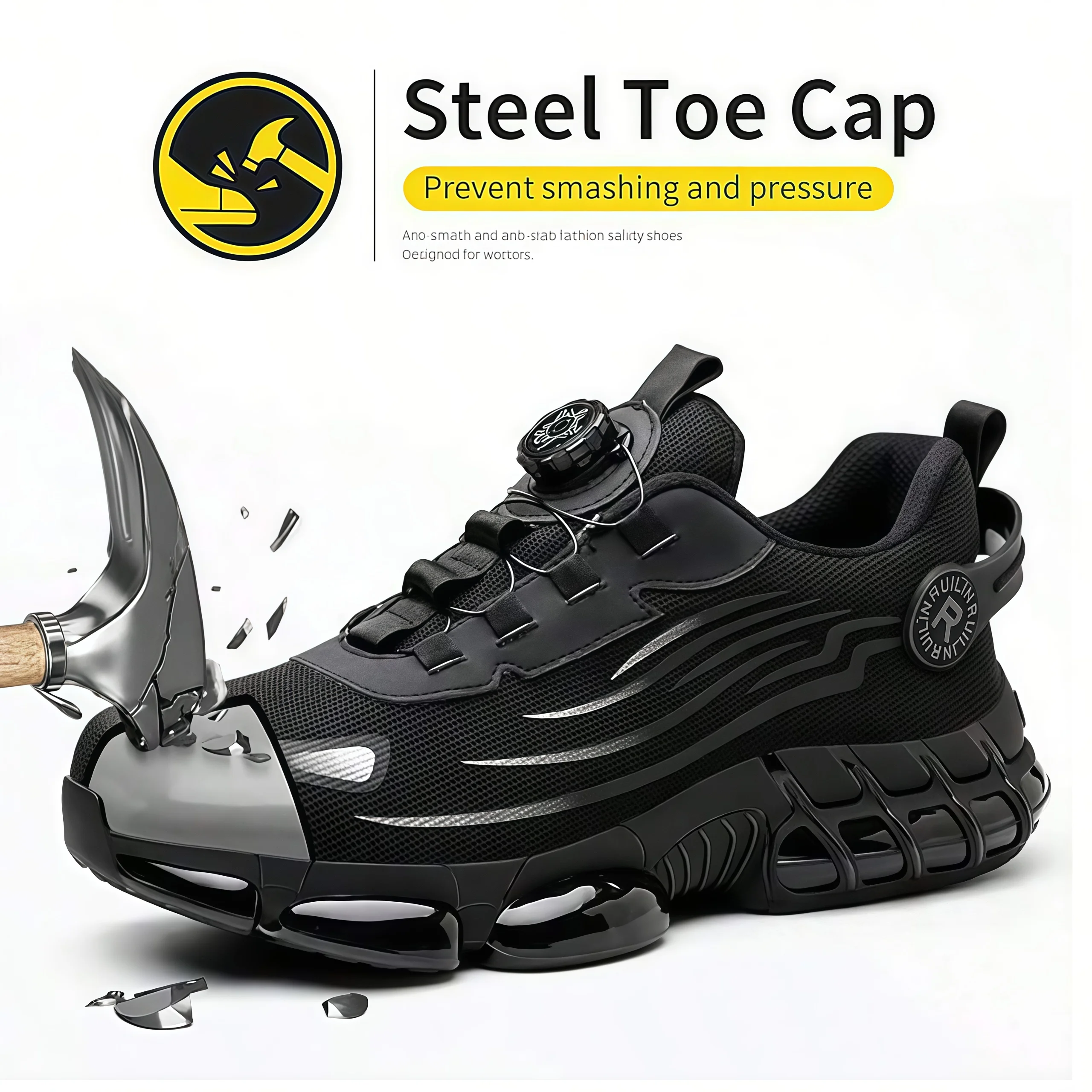 Zapatos de trabajo indestructibles con punta de acero para hombres y mujeres, zapatos de seguridad con botón giratorio, zapatos de seguridad ligeros para el trabajo de construcción - TopDealBox
